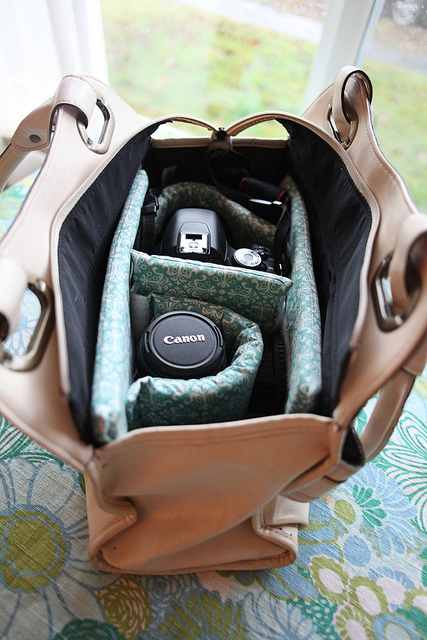 These are so easy to make, and make great gifts for photographers, too! This is the place you will store your camera equipment, primarily a camera body, a couple Additional accessories, like flash-unit, filters, charger, cables and personal essentials can be stored in other removable pockets. I ended up creating my own DIY camera bag purse, and it was both easy and practical!